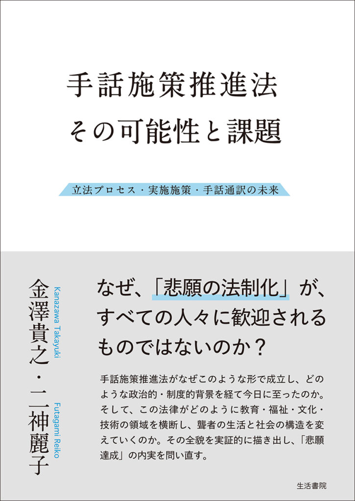 手話施策推進法がなぜこのような形で成立し、どのような政治的・制度的背景を経て今日に至ったのか。そして、この法律がどのように教育・福祉・文化・技術の領域を横断し、聾者の生活と社会の構造を変えていくのか。その全貌を実証的に描き出し、「悲願達成」の内実を問い直す。